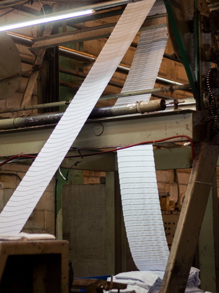 En Azzad Textil contamos con 15 telares circulares de diferentes diámetros (18 a 30 pulgadas) y galgas 20, 22 y 24, además de 5 máquinas especializadas para la fabricación de cuellos y puños.